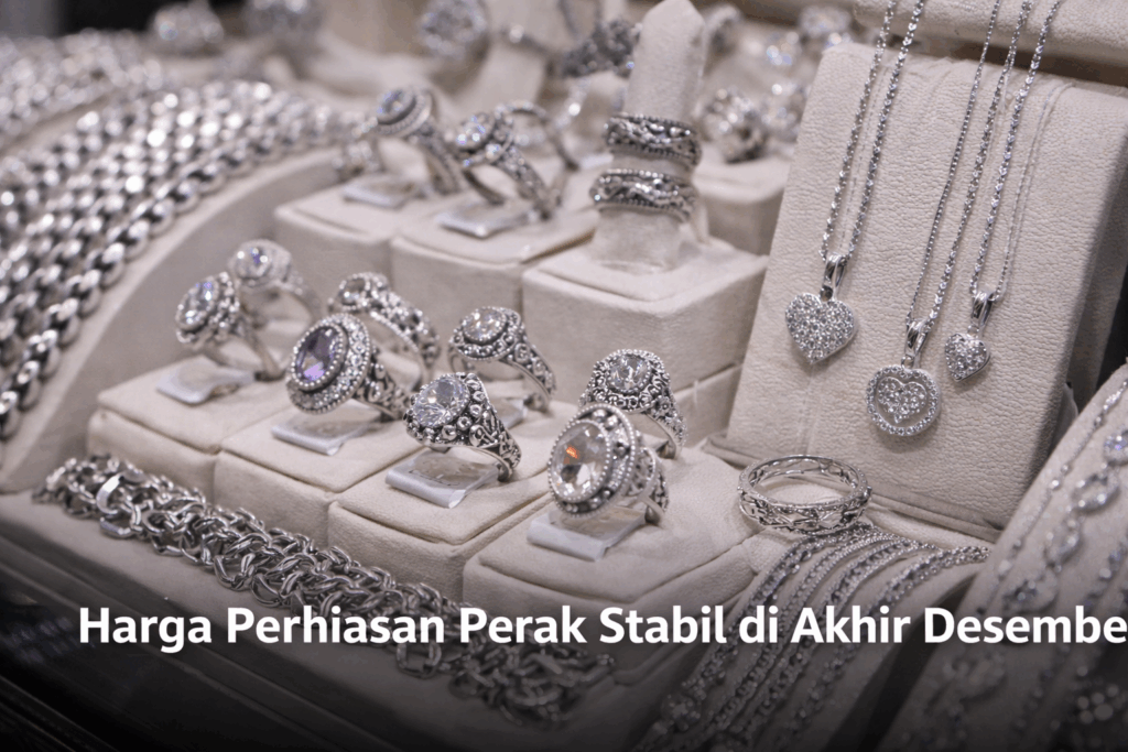 Harga perhiasan perak terpantau stabil pada perdagangan akhir Desember ini. Kondisi tersebut membuat perak tetap diminati masyarakat, baik sebagai perhiasan maupun alternatif investasi logam mulia selain emas.